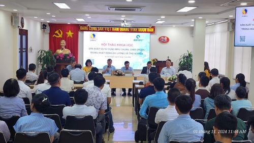 Sáng ngày 01/11/2024 Ủy ban Tiêu chuẩn Đo lường Chất lượng Quốc gia phối hợp với Hội Đo lường Việt Nam cùng Trung tâm Tiêu chuẩn Đo lường Chất lượng 3 (Quatest 3) tổ chức Hội thảo khoa học “ Sản xuất và sử dụng mẫu chuẩn, chất chuẩn trong hoạt động Đo lường và Thử nghiệm”